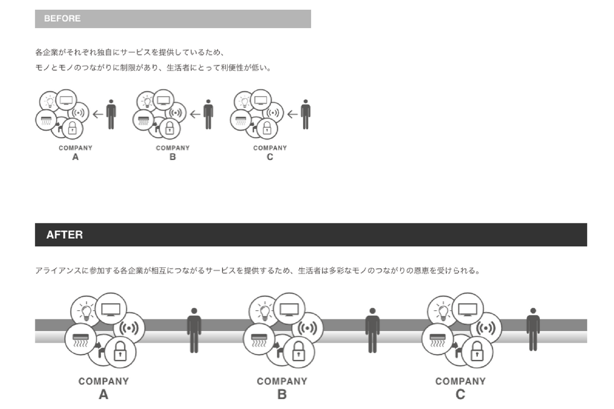 家電や車、保険などの全ての製品や産業が総合的に”つながる”、そういうアソシエーションを去年の秋につくりました。現在100社以上が加盟しています。