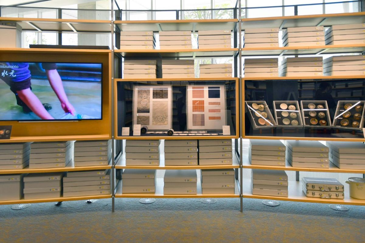 現在、これらは大学附属図書館で一般公開されています。収蔵箱に収められた各種資料(技法、制作工程、材料にかかわる見本や道具類、完成した製品など)を実際に手にとって閲覧できるほか、データベースで検索することも可能です。