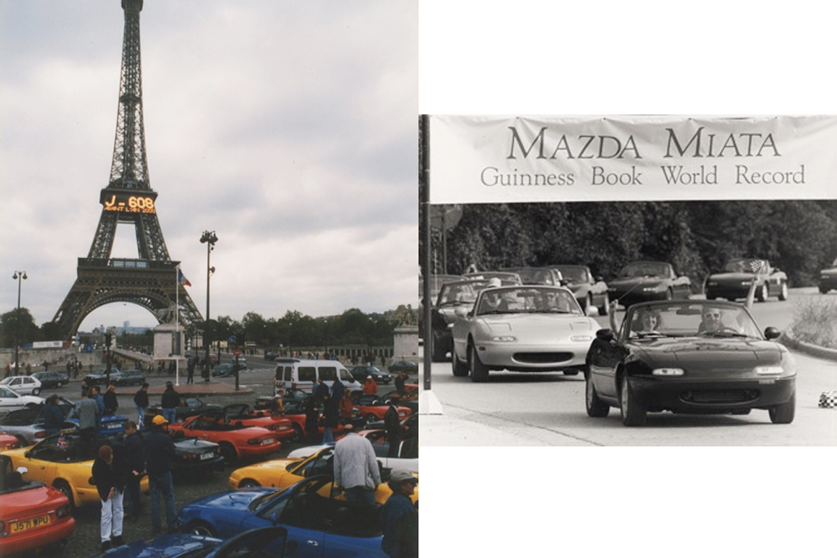 もともと企画書を作った段階で、クラブを作り、クラブ誌を発行しようという考えはあったんです。実際にアメリカでは「ミアータクラブ・オブ・アメリカ」という組織ができ、ウィスコンシンやオハイオなど、各地で200~300台が集まるイベントが開催されました。カリフォルニアで行われた時は日本から参加した人がいましたし、インディアナポリスで集会があった時は251台が集まってギネスブックのレコードにもなりました。パリのイベントは98年。このときもやっぱり200台以上が集まりエッフェル塔の下の広場が大混乱したんです。現地の警察には事前に何も伝えていなかったので最初はカンカン。途中からもう諦めて、「勝手にしろ」という雰囲気でした(笑)。