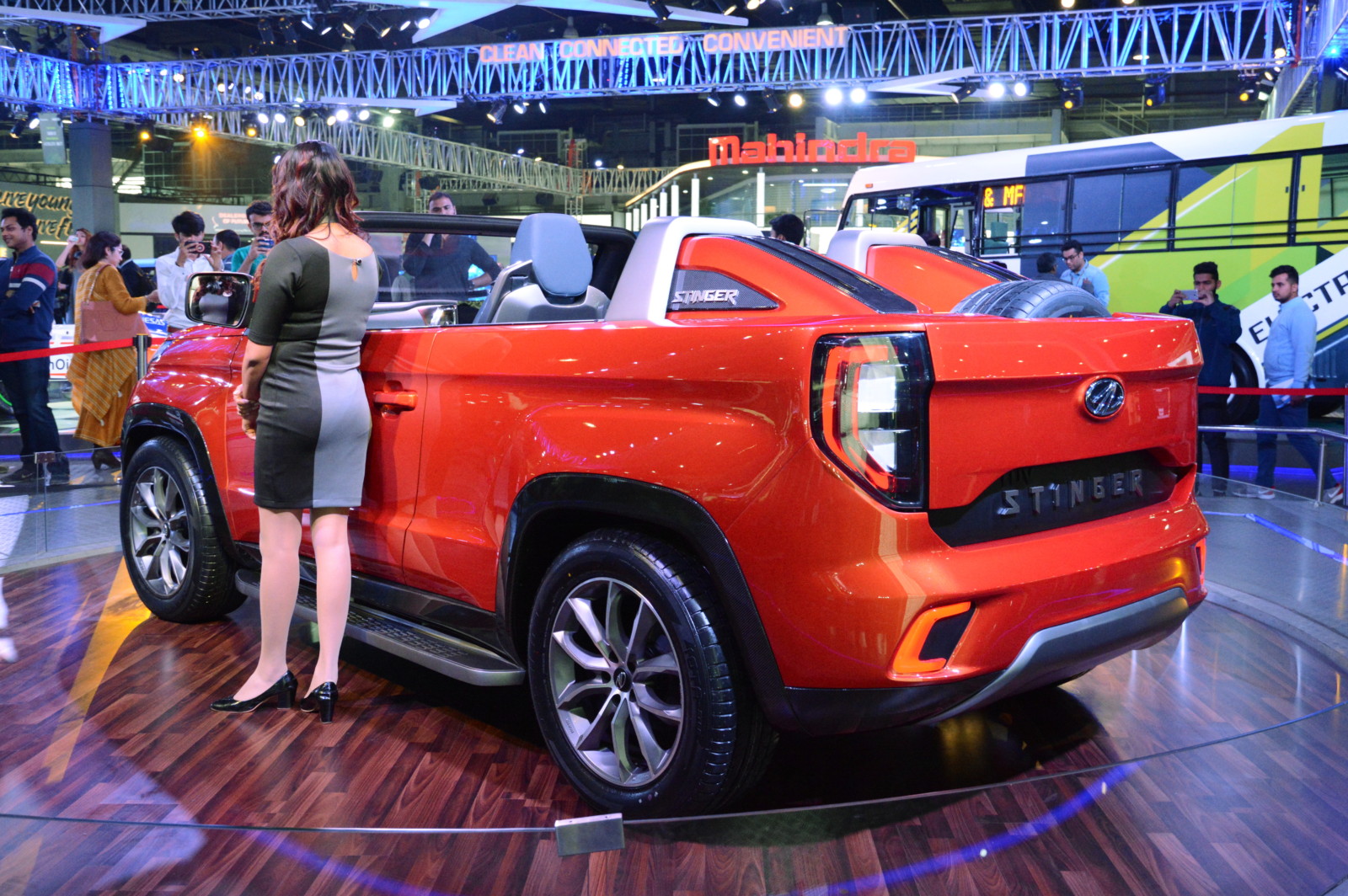 いっぽう、3年前にグループ企業がピニンファリーナを買収し、デザイン能力を一気に高めたのがマヒンドラだ。しかしこれとは別に、以前から社内デザイン部のレベルを少しずつ底上げしていた。今回公開されたコンセプトカーはそうした積み重ねの結果と言える。オープントップSUVというユニークなSTINGER(スティンガー)は、同社が強みを持つオフローダーの魅力を拡大するもの。2ドアながら4座席というのは、スタイリッシュさと実用性の両方を求めるインド人の欲求に応えようとするものだ。