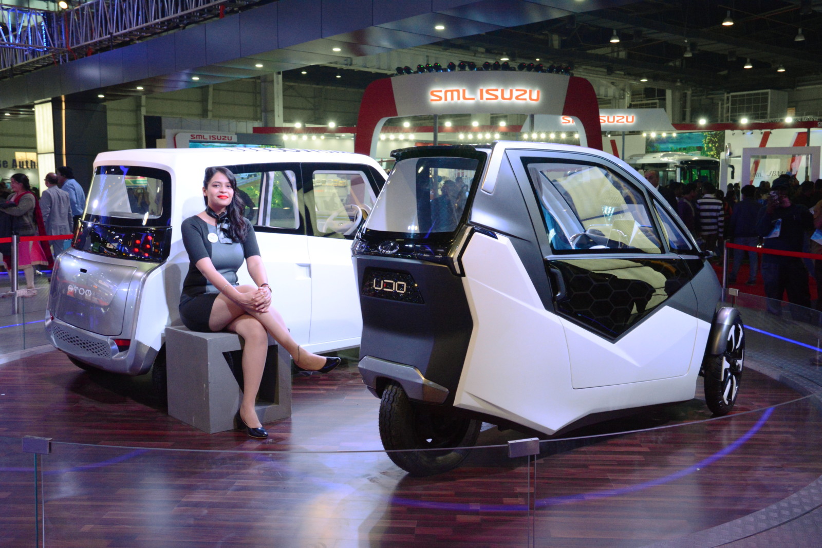 またマヒンドラは今回、電動コンセプトにも力を入れていた。3輪のUDO(ユードゥ)と4輪のATOM(アトム)は、日本流に言えば「超小型モビリティ」に相当するもの。UDOは2座席、ATOMは狭いながらも4人乗車が可能。現段階では純粋なコンセプト提案で、市販の予定はないということだったが、電動化を推進したい政府の意向に応えられることをアピールする役目は立派に果たしていたといえる。