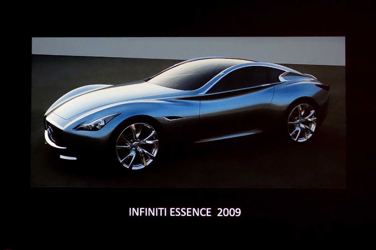 対称的なのは、インフィニティのコンセプトカー、「ESSENCE」。GT-Rとは180度異なり、欧米のクラシックな文法に則って作ったスポーツカーだ。