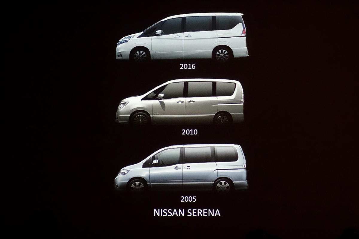 最後に中村氏は「セレナ」を紹介。戦略を持って「キープ・コンセプト」を続けているモデルだ。直近3世代は同じテーマに則ってデザインされている。コンセプトを変えない戦略は、新鮮味がないと見られるリスクもある。だがセレナはフォルクスワーゲンのゴルフのように一貫性、継続性を持ってデザインを大事に育てているという。