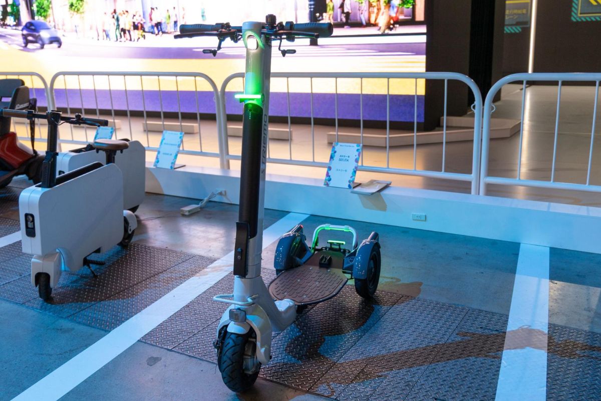 今回のショーで特に目立っていたのは、2023年7月に施行された改正道路交通法で新設された「特定小型原動機付自転車(特定小型原付)」の枠組みに対応した小型電動モビリティだ。
