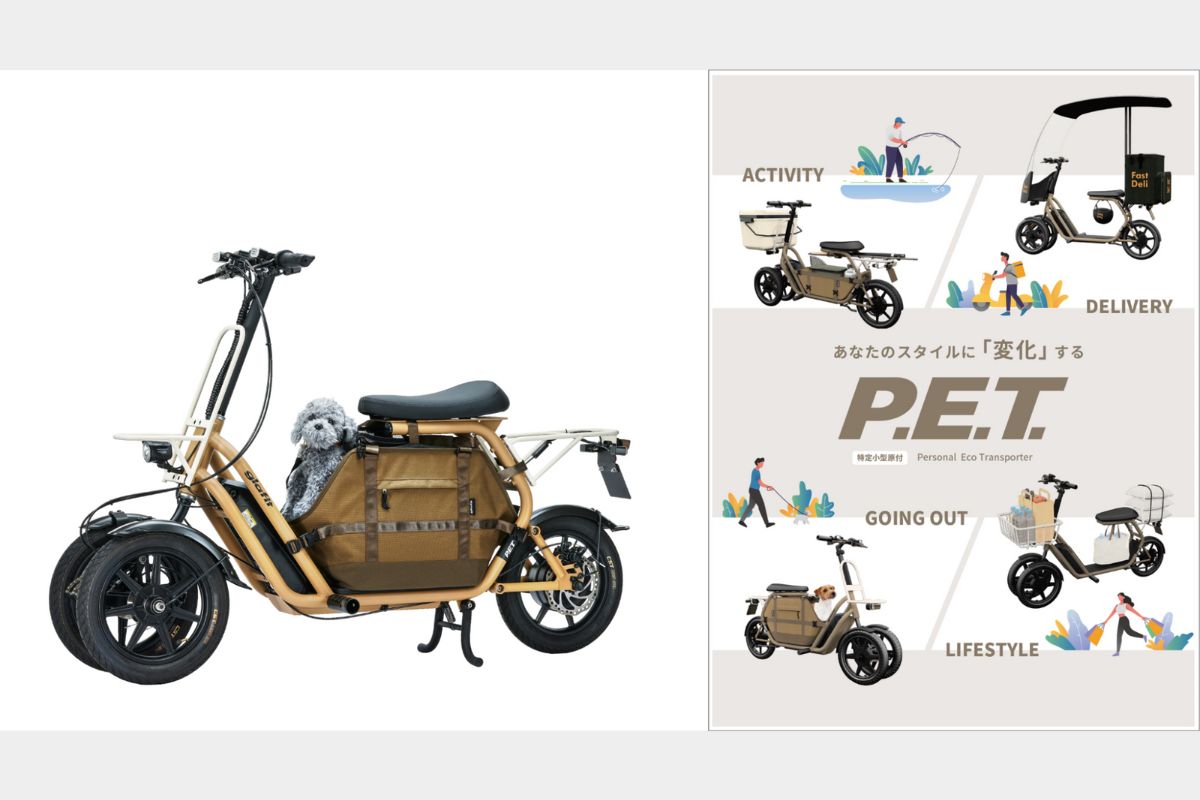 P.E.T.は前輪を2輪として安定性を高めたモデルで、その名の通りシート下にペットを乗せられるようになっている。写真ではガゴをつけたり、屋根をつけたりしてデリバリに使うような提案もあった。