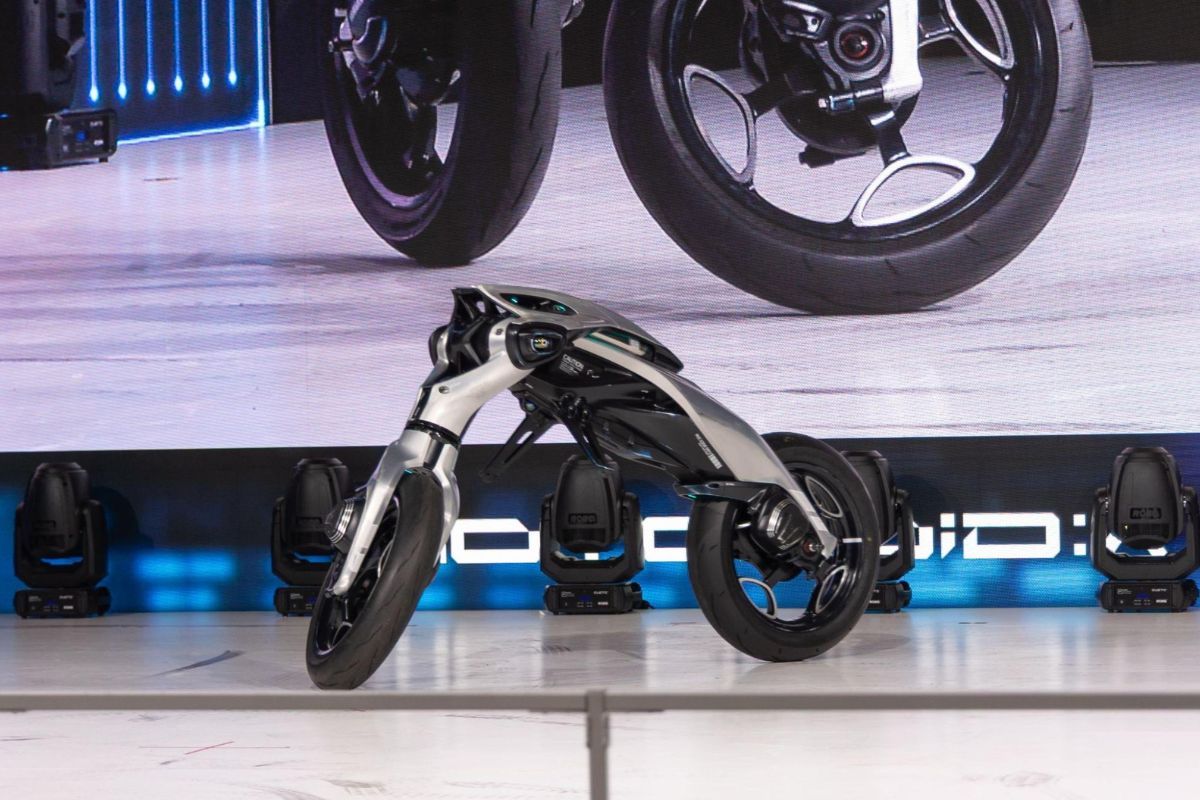 個人的に最も印象に残ったのは、ヤマハ発動機の「MOTOROiD:Λ(モトロイド ラムダ)」だ。ヤマハは2017年に自立する2輪車「MOTOROiD」を発表、前回のショーではその進化版「MOTOROiD2」を展示していた。いずれもインパクトがある造形だったが、ハンドルやシートがあり、まだぎりぎりバイクらしい形をしていた。ところが、今回のMOTOROiD:Λは、ハンドルもシートもない。