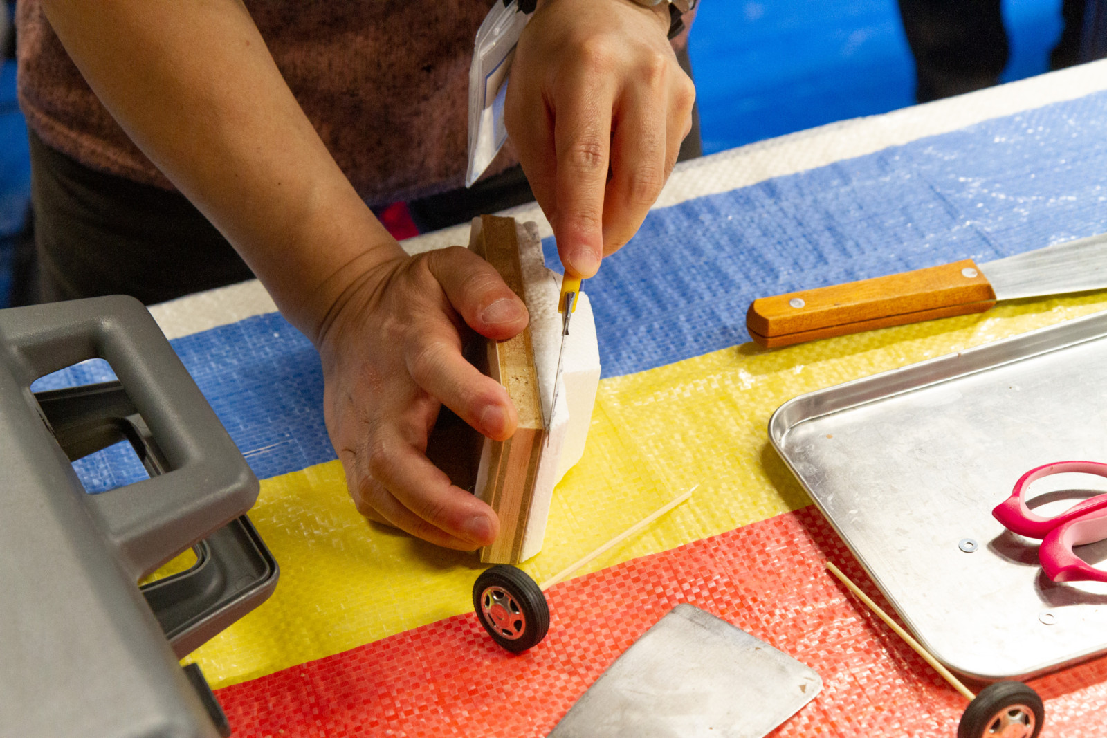 まず着手したのは用意された中子を削る作業。ストラトス・ゼロの全高は一般的なセダンの半分ちょっとしかないから、その分削らないといけないのだ。