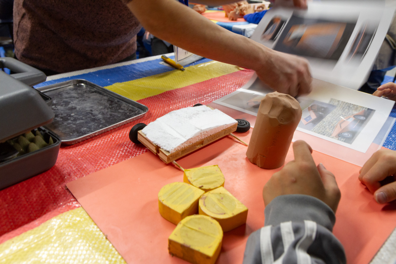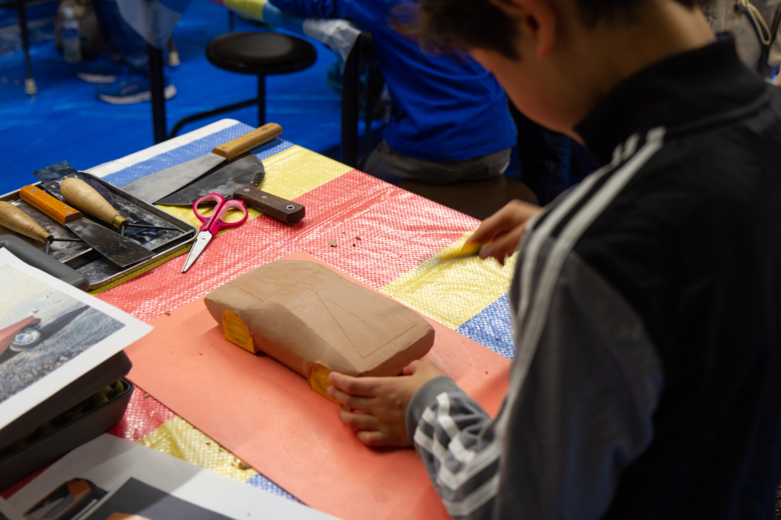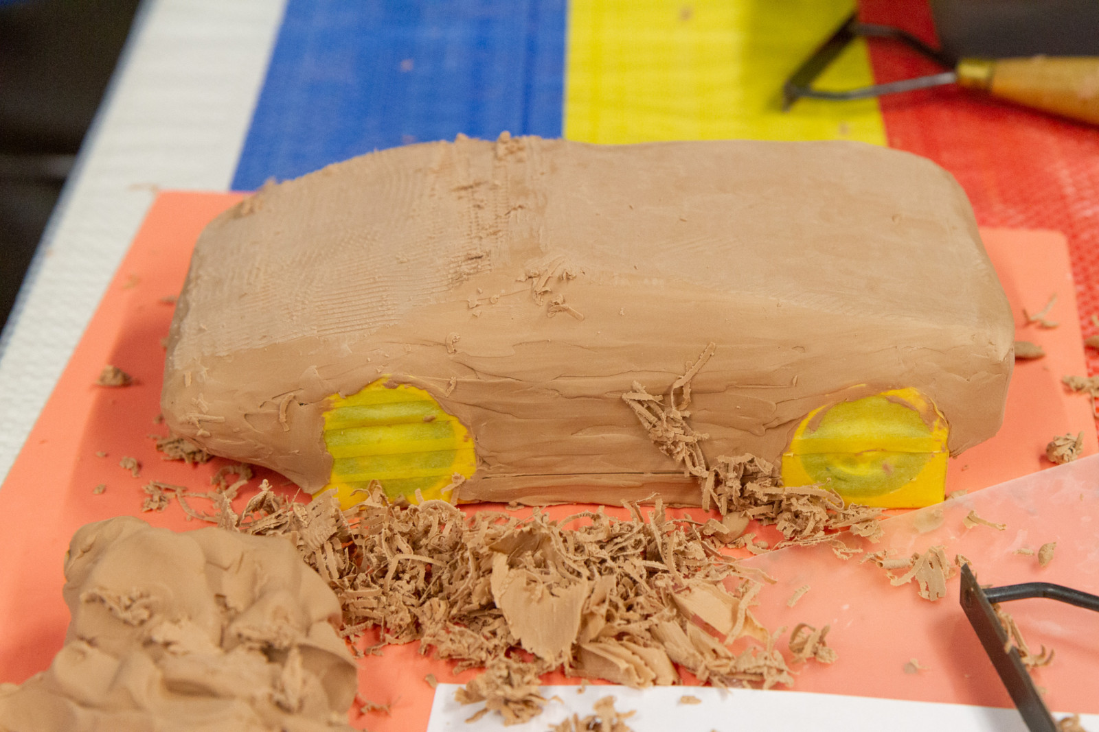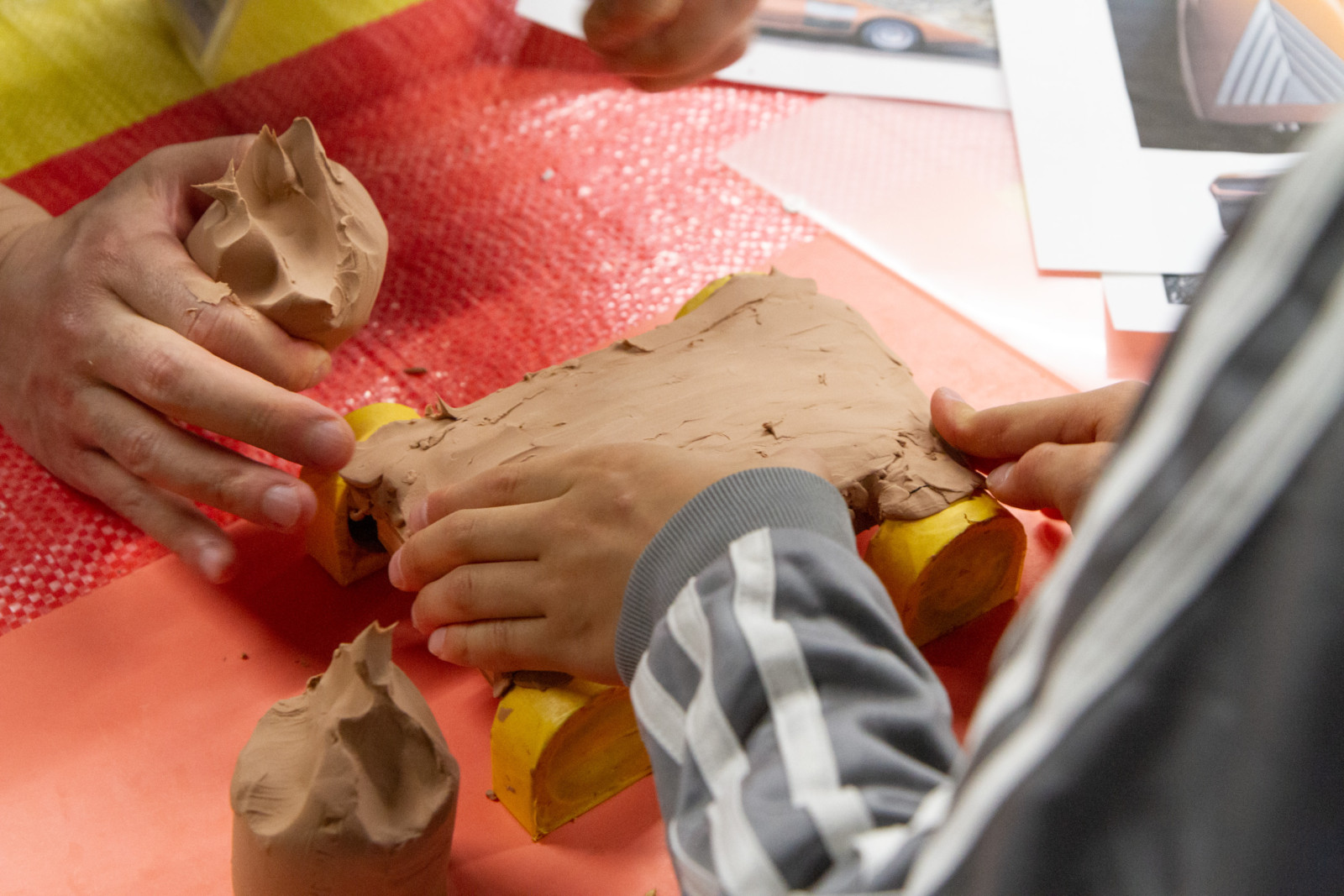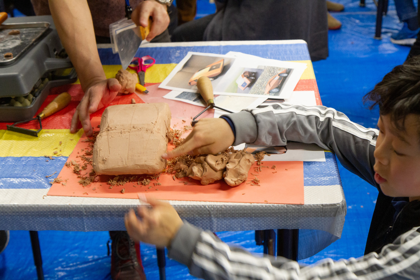 小学生には難しいので、途中から先生に代わってもらった。何しろクレイモデル作りは、通常は何週間もかけてするような作業。2時間半という時間内で仕上げるには、かなりのスピードで作業しないと間に合わない。